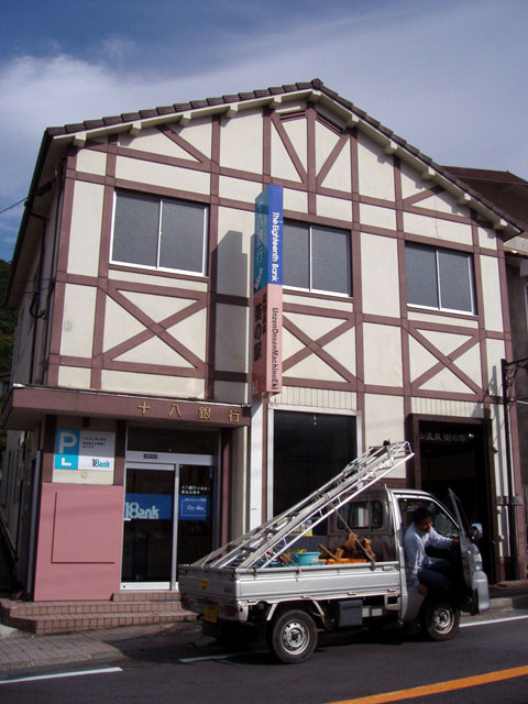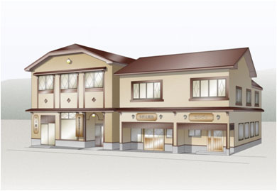 ある特定の時間の再生による街並みづくりだけを目指すのではなく、流れゆく時と向き合いながら新しい湯の町の創出を目指します。 明治時の洋館群のコピーではなく和風の中に大正ロマンという大前提のもと、一階正面に庇を設け雨がかりを極力抑えた日本独特の町屋的要素と共に、アールヌーボー様式の照明や装飾が一番取り入れられた時期である大正期を彷彿とさせる看板・照明を取り入れ、隣りと色調を合わせることで、建物のデザインの相違を感じさせない町並みファサードを目指しました。